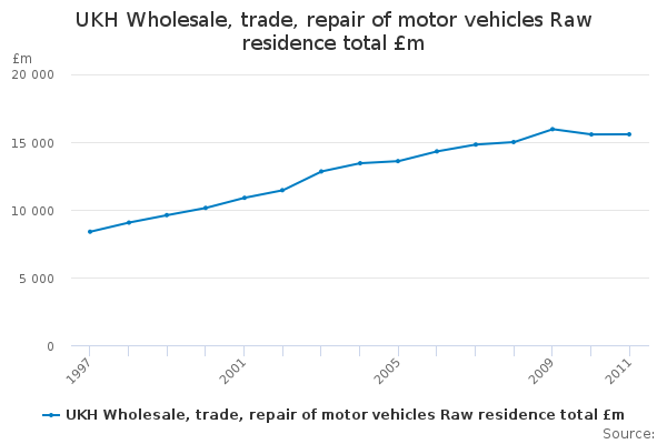 Download this time seriesUKH Wholesale, trade, repair of motor vehicles Raw residence total £m
