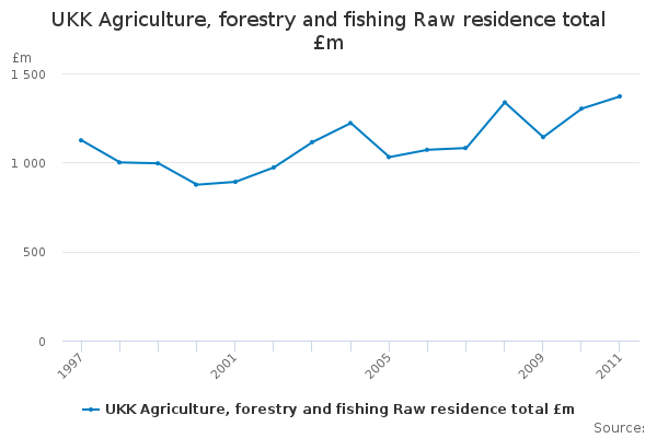 Download this time seriesUKK Agriculture, forestry and fishing Raw residence total £m