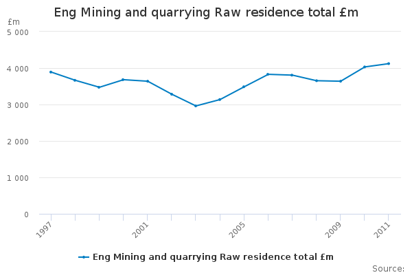Download this time seriesEng Mining and quarrying Raw residence total £m