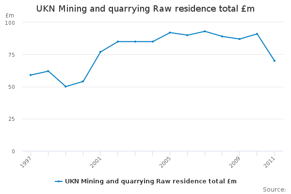 Download this time seriesUKN Mining and quarrying Raw residence total £m