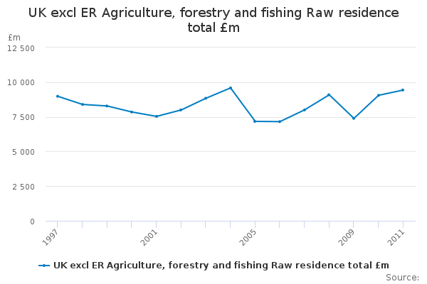 Download this time seriesUK excl ER Agriculture, forestry and fishing Raw residence total £m