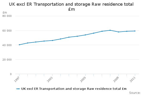 Download this time seriesUK excl ER Transportation and storage Raw residence total £m