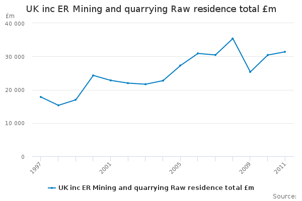 Download this time seriesUK inc ER Mining and quarrying Raw residence total £m