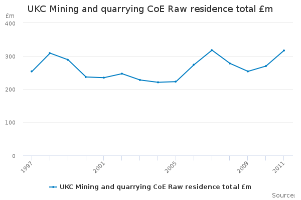 Download this time seriesUKC Mining and quarrying CoE Raw residence total £m