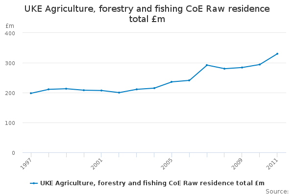 Download this time seriesUKE Agriculture, forestry and fishing CoE Raw residence total £m