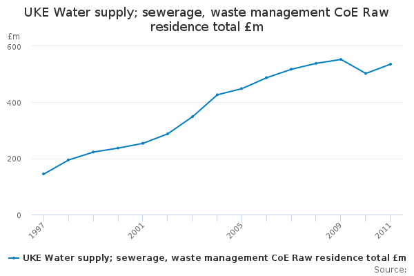 Download this time seriesUKE Water supply; sewerage, waste management CoE Raw residence total £m