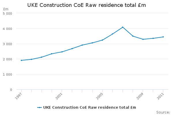 Download this time seriesUKE Construction CoE Raw residence total £m