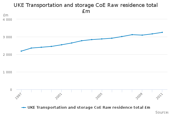 Download this time seriesUKE Transportation and storage CoE Raw residence total £m