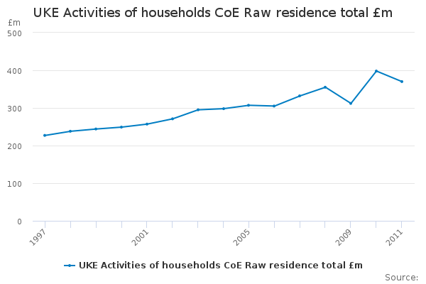 Download this time seriesUKE Activities of households CoE Raw residence total £m