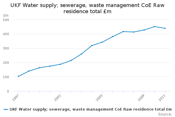 Download this time seriesUKF Water supply; sewerage, waste management CoE Raw residence total £m