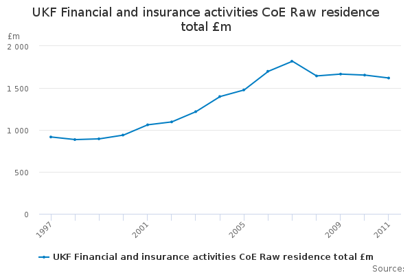 Download this time seriesUKF Financial and insurance activities CoE Raw residence total £m
