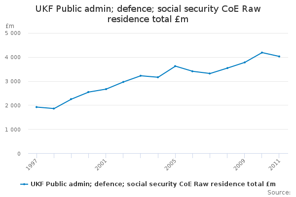 Download this time seriesUKF Public admin; defence; social security CoE Raw residence total £m