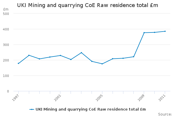 Download this time seriesUKI Mining and quarrying CoE Raw residence total £m