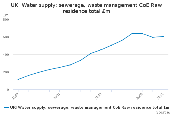 Download this time seriesUKI Water supply; sewerage, waste management CoE Raw residence total £m