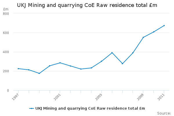 Download this time seriesUKJ Mining and quarrying CoE Raw residence total £m