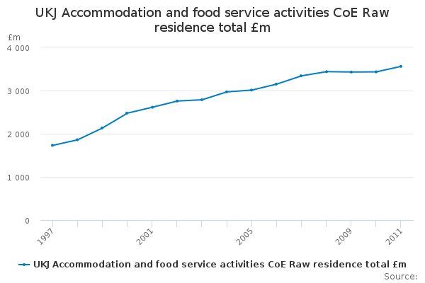 Download this time seriesUKJ Accommodation and food service activities CoE Raw residence total £m