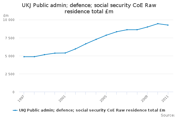 Download this time seriesUKJ Public admin; defence; social security CoE Raw residence total £m