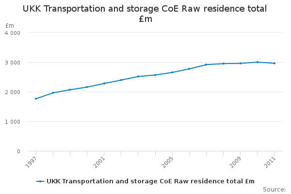 Download this time seriesUKK Transportation and storage CoE Raw residence total £m