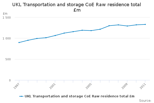 Download this time seriesUKL Transportation and storage CoE Raw residence total £m