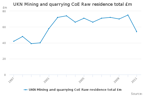 Download this time seriesUKN Mining and quarrying CoE Raw residence total £m