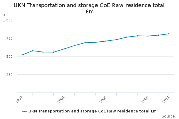 Download this time seriesUKN Transportation and storage CoE Raw residence total £m