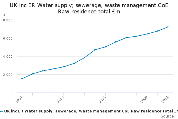 Download this time seriesUK inc ER Water supply; sewerage, waste management CoE Raw residence total £m