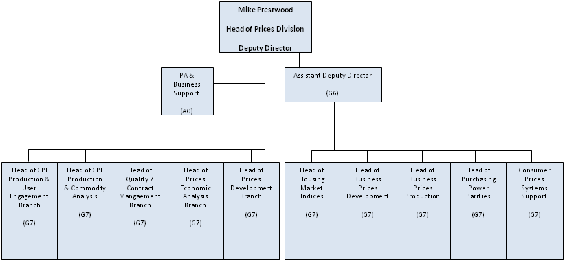 The Office for National Statistics (ONS) Prices division has allocated resources to deliver the business as usual production of CPIH and CPI, as well as the projects for improvement and development that form the work programme. Prices division is led by a Deputy Director and consists of a number of teams that contribute to the production and development of Consumer Price Indices.