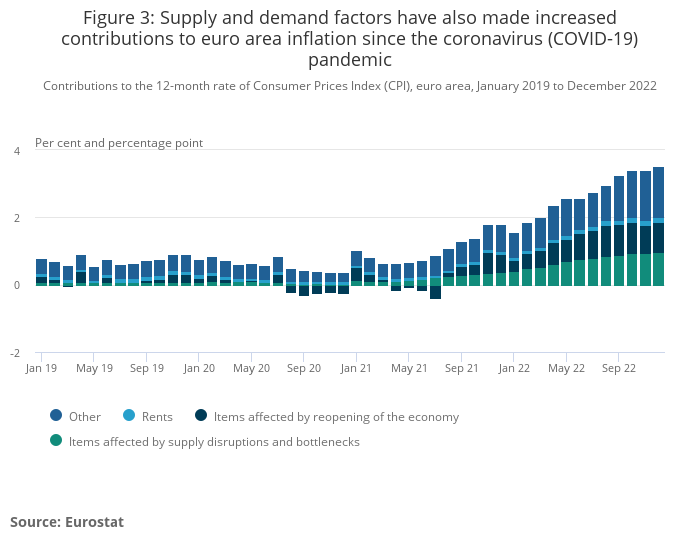 Figure 3: Supply and demand factors have also made increased contributions to euro area inflation since the coronavirus (COVID-19) pandemic