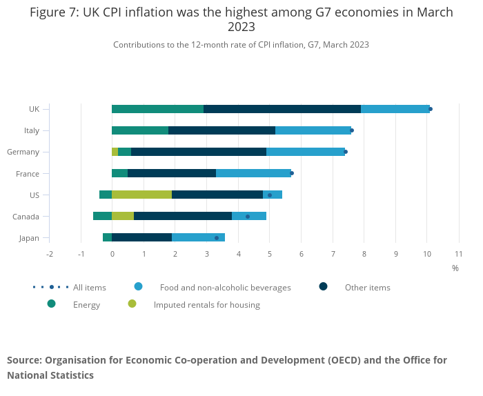 Figure 7: UK CPI inflation was the highest among G7 economies in March 2023