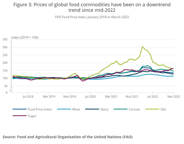 Download this chart Figure 3: Prices of global food commodities have been on a downtrend trend since mid-2022
