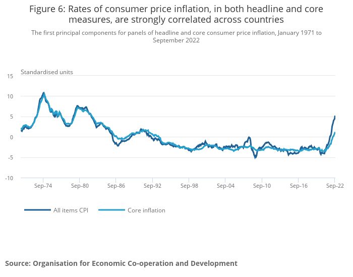 Figure 6: Rates of consumer price inflation, in both headline and core measures, are strongly correlated across countries