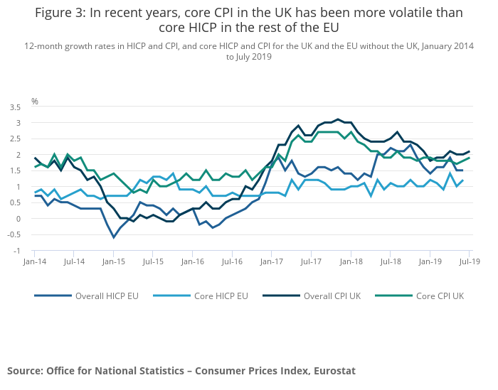 - The most recent data available for the EU without the UK for overall HICP and core HICP are for June 2019 from Eurostat.