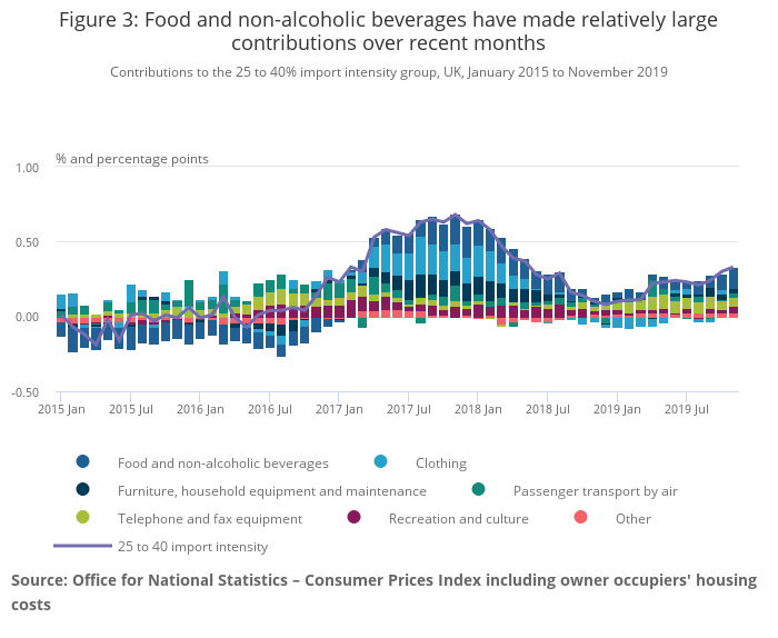 Contributions to the 25 to 40% import intensity group, UK, January 2015 to November 2019