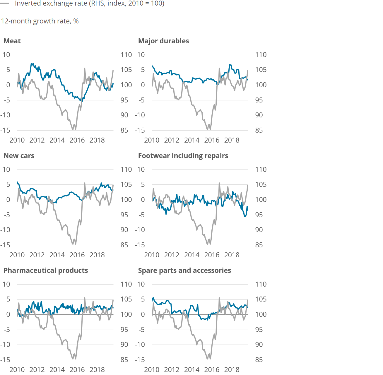 Download this image Figure 4: Consumer price inflation is also sensitive to exchange rate movements but the passthrough is of a lower magnitude compared with producer prices