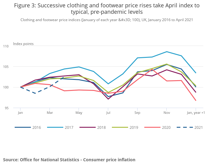 Figure 3: Successive clothing and footwear price rises take April index to typical, pre-pandemic levels
