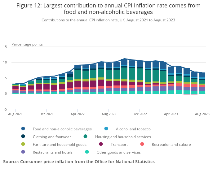 Office for National Statistics (ONS), released 20 September 2023, ONS website, statistical bulletin, Consumer price inflation, UK: August 2023