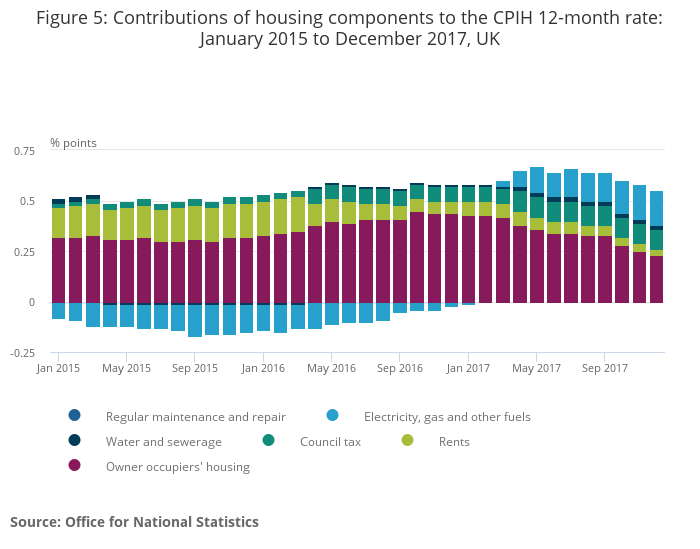 The largest upward contribution to the CPIH 12-month rate continues to come from housing and household services, albeit less than was observed during the spring and summer months of 2017.