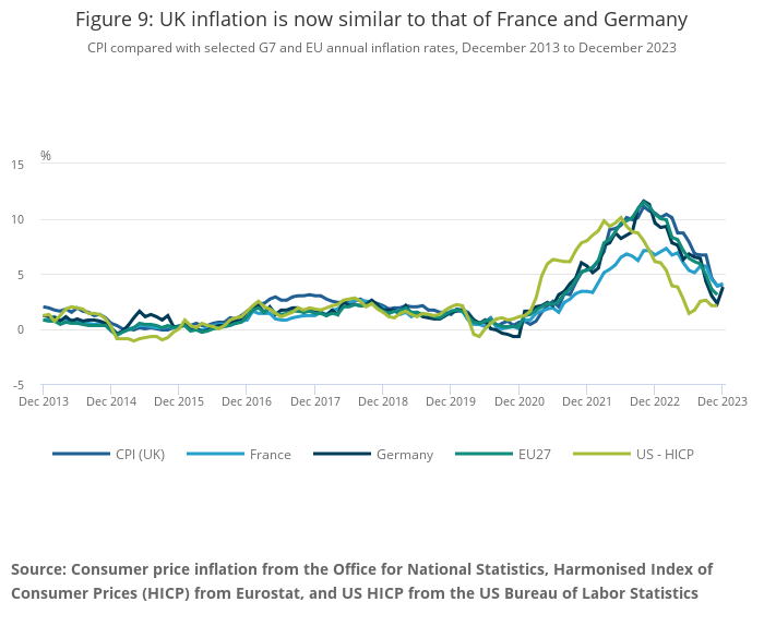 Figure 9: UK inflation is now similar to that of France and Germany