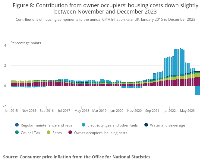 Download this chart Figure 8: Contribution from owner occupiers’ housing costs down slightly between November and December 2023