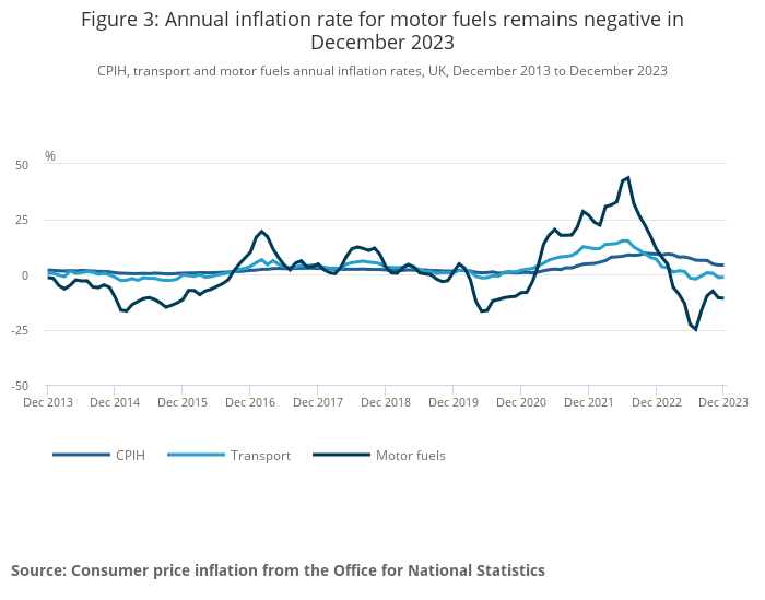 Figure 3: Annual inflation rate for motor fuels remains negative in December 2023