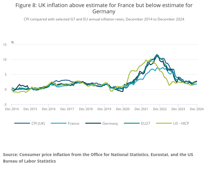 - On a monthly basis, CPIH rose by 0.3% in December 2024, down from 0.4% in December 2023.