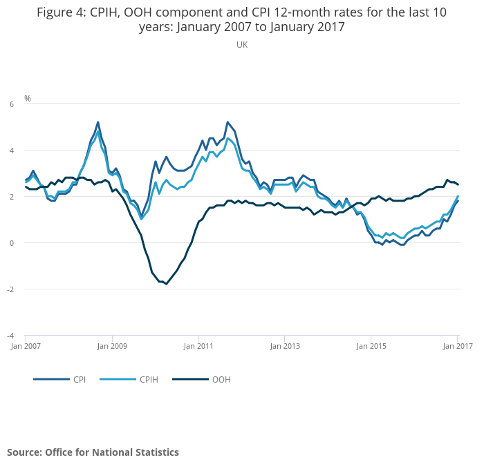 - CPIH (not a National Statistic) rose by 2.0% in the year to January 2017, compared with a 1.7% rise in the year to December 2016.
