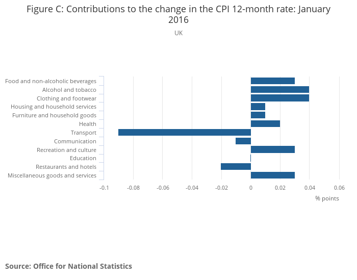 Download this chart Figure C: Contributions to the change in the CPI 12-month rate: January 2016