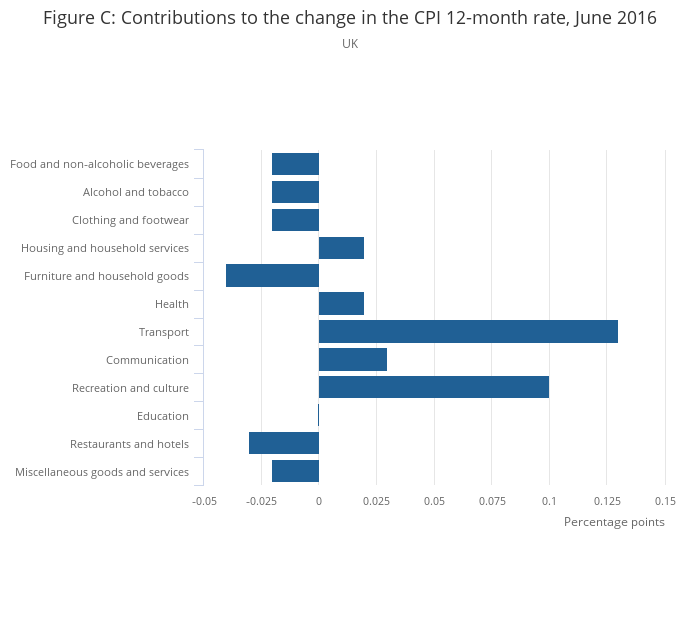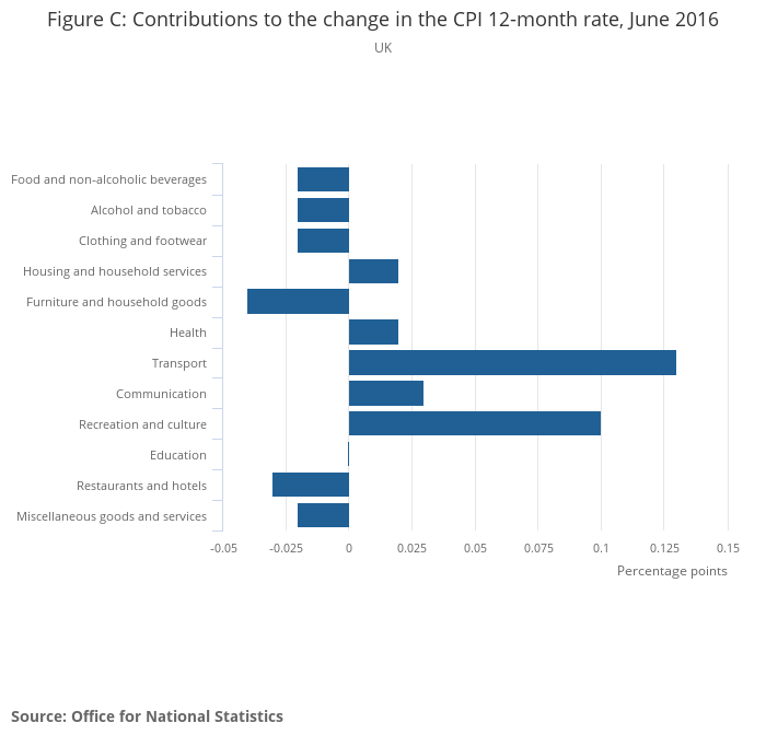 This section explains which goods and services had the biggest impact on the change to the 12-month rate between May and June 2016 and, where relevant, considers the longer-term inflationary trends for these goods and services.