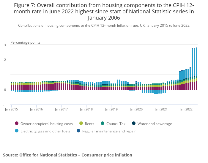 Figure 7: Overall contribution from housing components to the CPIH 12-month rate in June 2022 highest since start of National Statistic series in January 2006