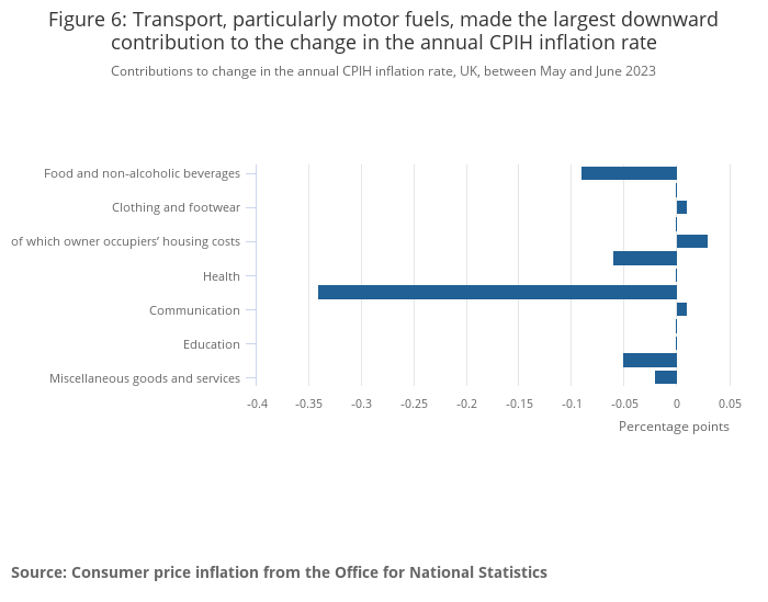 Contributions to change in the annual CPIH inflation rate, UK, between May and June 2023