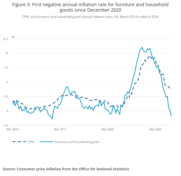 Figure 3: First negative annual inflation rate for furniture and household goods since December 2020