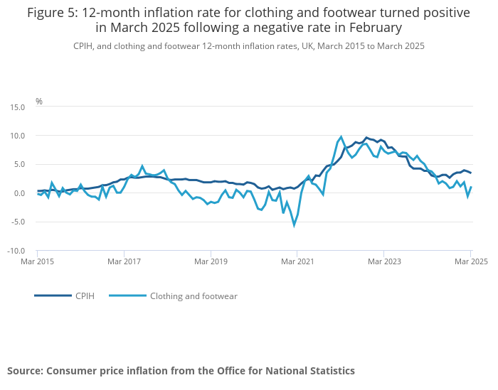 Figure 5: 12-month inflation rate for clothing and footwear turned positive in March 2025 following a negative rate in February