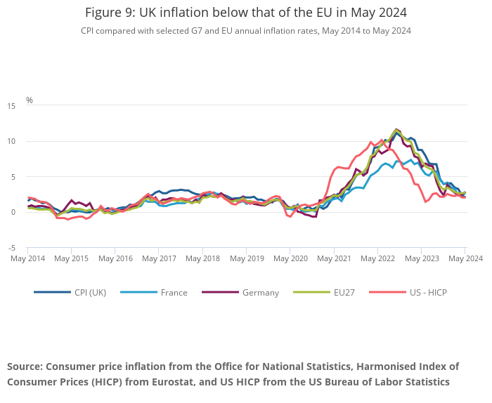 The Consumer Prices Index including owner occupiers’ housing costs (CPIH) rose by 2.8% in the 12 months to May 2024, down from 3.0% in the 12 months to April.