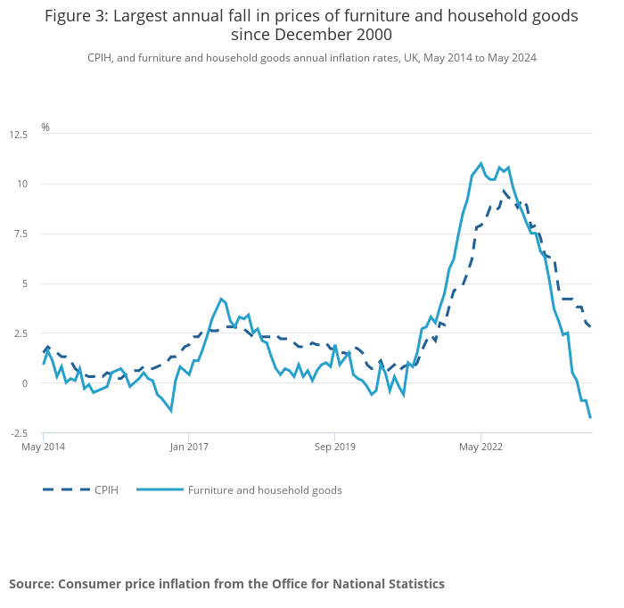 Figure 3: Largest annual fall in prices of furniture and household goods since December 2000
